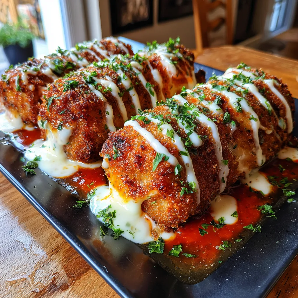 - Plate and Serve: Spread a warm layer of marinara sauce on the bottom of your serving dish. Arrange the hot, crispy Lasagna Fritta on top of the marinara. Drizzle generously with warm alfredo sauce and garnish with fresh chopped parsley. Serve immediately and enjoy the crunch!