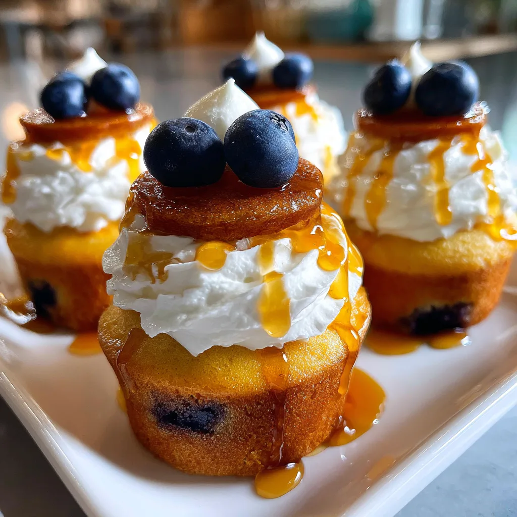 These brilliant little treats start with a tender, fluffy vanilla cake base that is bursting with juicy, baked-in blueberries. But the real magic happens on top. Instead of standard sprinkles, each cupcake is crowned with a thick, luscious swirl of frosting, a perfectly golden mini pancake, a generous drizzle of real maple syrup, and a cluster of fresh blueberries. It is a visual masterpiece that looks like a tiny, perfectly plated breakfast.