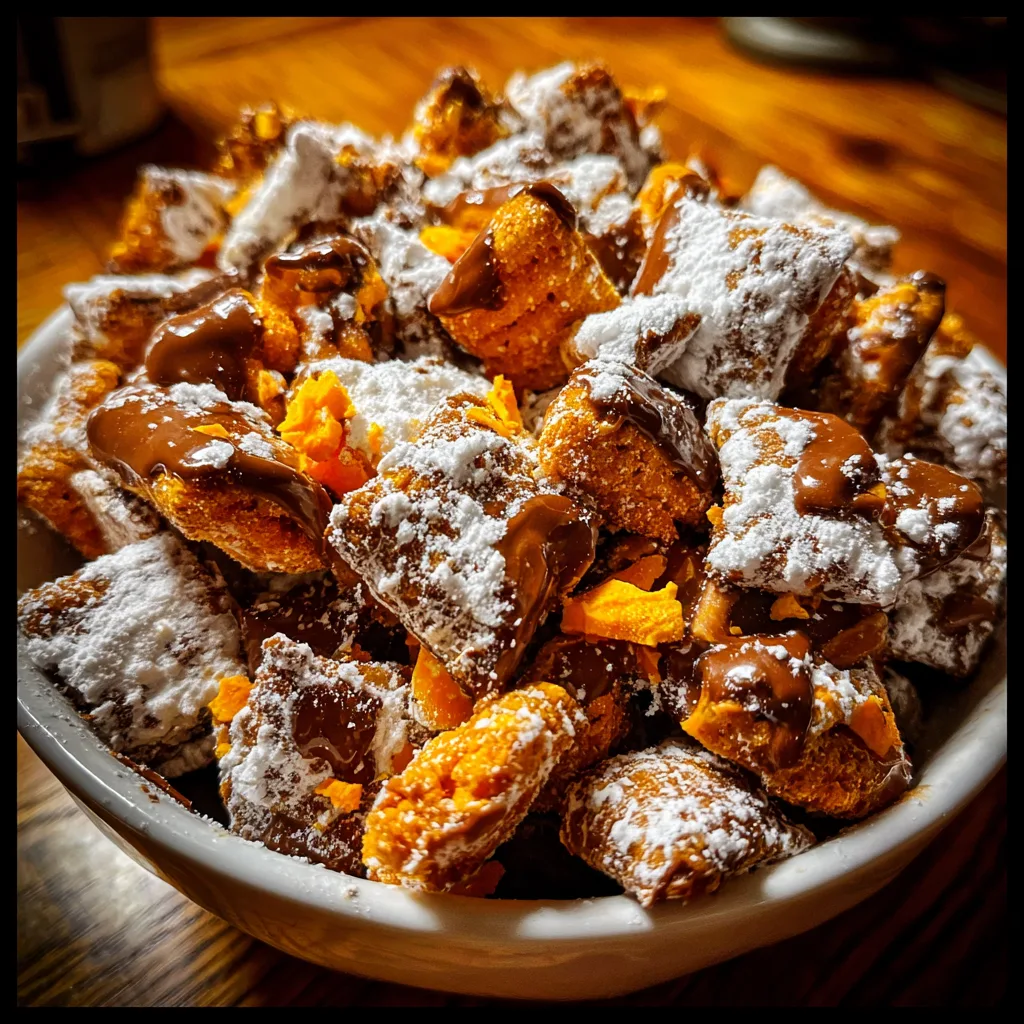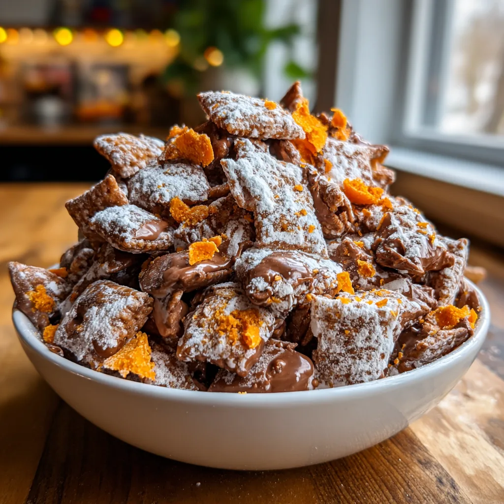 Whether you are looking for a last-minute contribution to a potluck, a movie night treat, or just a sweet fix that doesn’t require turning on the oven, this recipe is your answer. It takes the beloved “Chex Mix” concept and drenches it in a rich mixture of melted chocolate and peanut butter, coats it in snowy powdered sugar, and finishes it off with shards of toffee-like candy. It is dangerously addictive and incredibly easy to make.