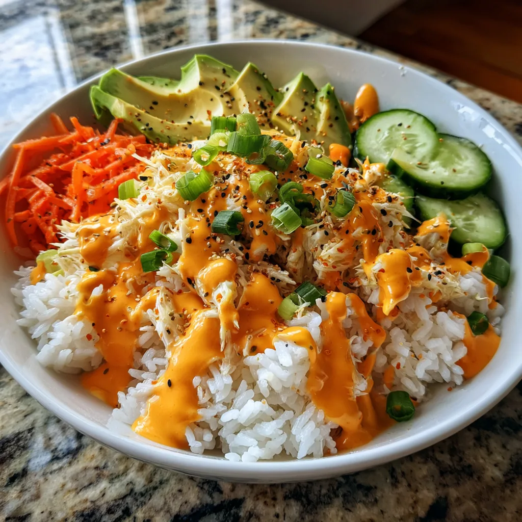 The California Crab Bowl proves that you do not need special equipment, hours of free time, or extensive culinary training to enjoy the vibrant, complex flavors of your favorite sushi roll. By deconstructing the classic ingredients and layering them over a comforting bed of fluffy basmati rice, you create a meal that is visually stunning, nutritionally balanced, and bursting with flavor. The creamy avocado, the crisp, refreshing vegetables, the sweet crab, and that addictive, fiery spicy mayo all work in perfect harmony. Whether you are meal-prepping for a busy week ahead or throwing together a quick, impressive dinner, this bowl is a guaranteed winner that will leave you completely satisfied.