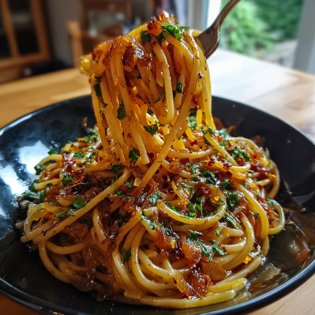 The secret to this dish lies in the balance of flavors. Caramelized onions provide a natural sweetness that needs a counterpoint. That’s where the chilli oil and garlic come in. The heat cuts through the sweetness, while a splash of pasta water creates a silky sauce that emulsifies the oil and onion jam, ensuring it clings perfectly to the noodles rather than sliding off.