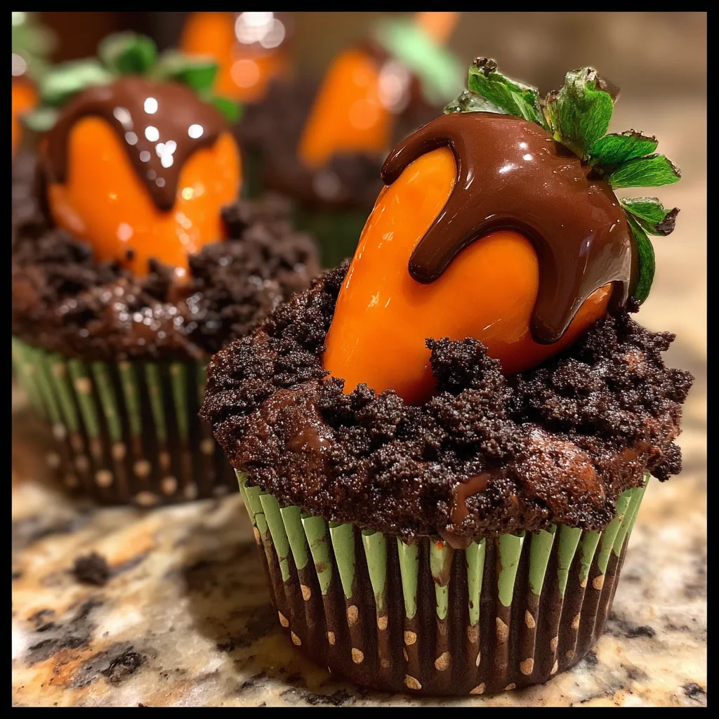At first glance, these treats look like tiny, freshly tilled garden plots with bright orange carrots poking out of the rich, dark soil. But the magic lies in the illusion. The “dirt” is actually a decadent layer of rich chocolate frosting generously coated in crushed chocolate sandwich cookies (like Oreos). And the “carrot”? A fresh, juicy strawberry dipped in vibrant orange candy melts, complete with its natural green leafy stem serving as the carrot top. It is a brilliant trompe l’œil that bridges the gap between playful creativity and gourmet indulgence.