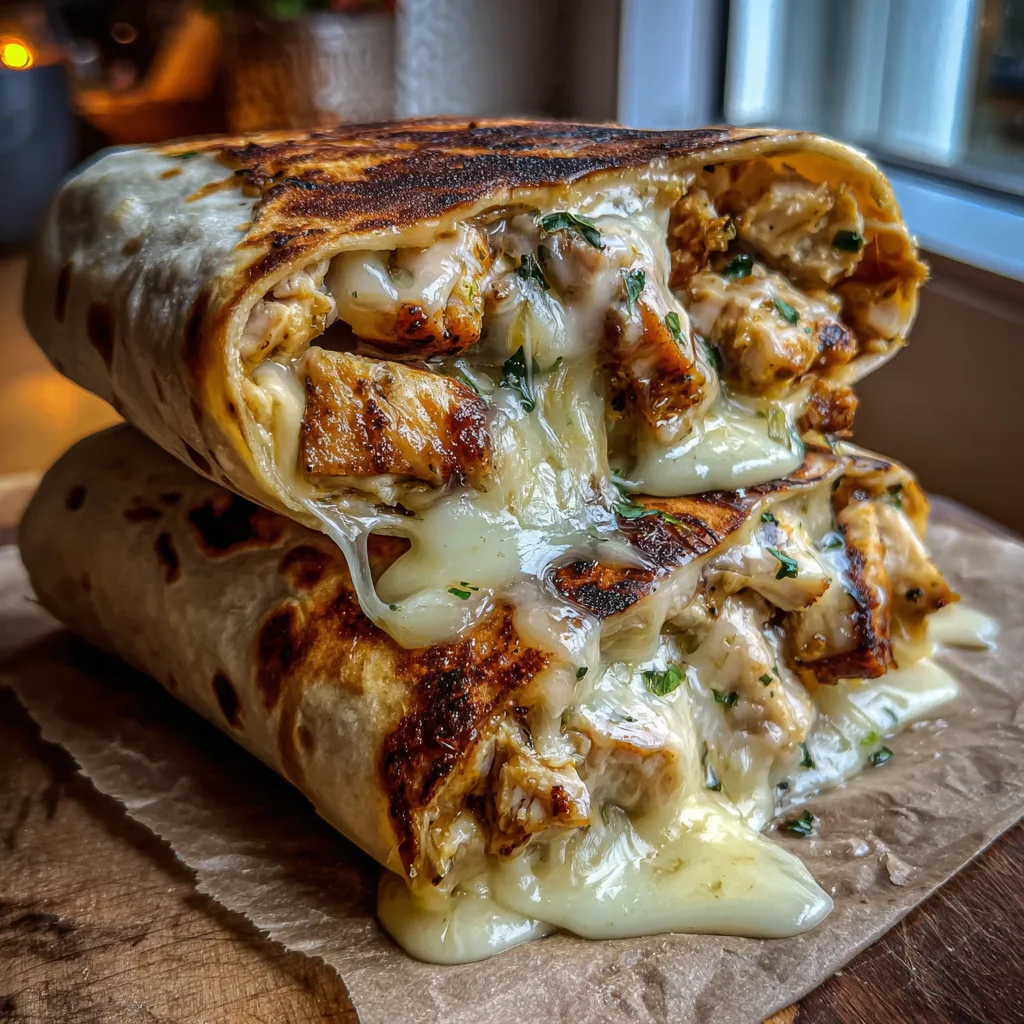 Ooey-Gooey Cheesy Garlic Chicken Wraps
