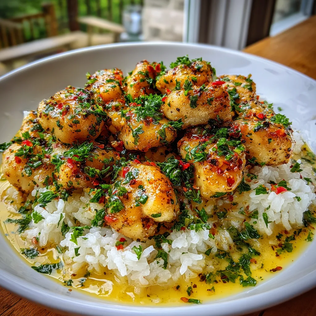 There are few aromas in the culinary world quite as intoxicating as fresh garlic sizzling gently in a pool of rich, melted butter. It is a scent that immediately promises comfort, warmth, and an incredibly satisfying meal. Traditionally, the famous “scampi” preparation—a luscious, bright sauce composed of butter, garlic, white wine, lemon juice, and a kick of red pepper flakes—is reserved for delicate seafood like shrimp or langoustines. However, transforming this classic Italian-American staple into a hearty, poultry-based masterpiece is a revelation. Enter Chicken Scampi with Creamy Garlic Parmesan Rice. This dish takes the bright, zesty, and undeniably rich flavors of traditional scampi and pairs them with juicy, golden-brown bites of pan-seared chicken breast, all resting on a magnificent bed of creamy, cheesy rice designed specifically to soak up every single drop of that incredible sauce.