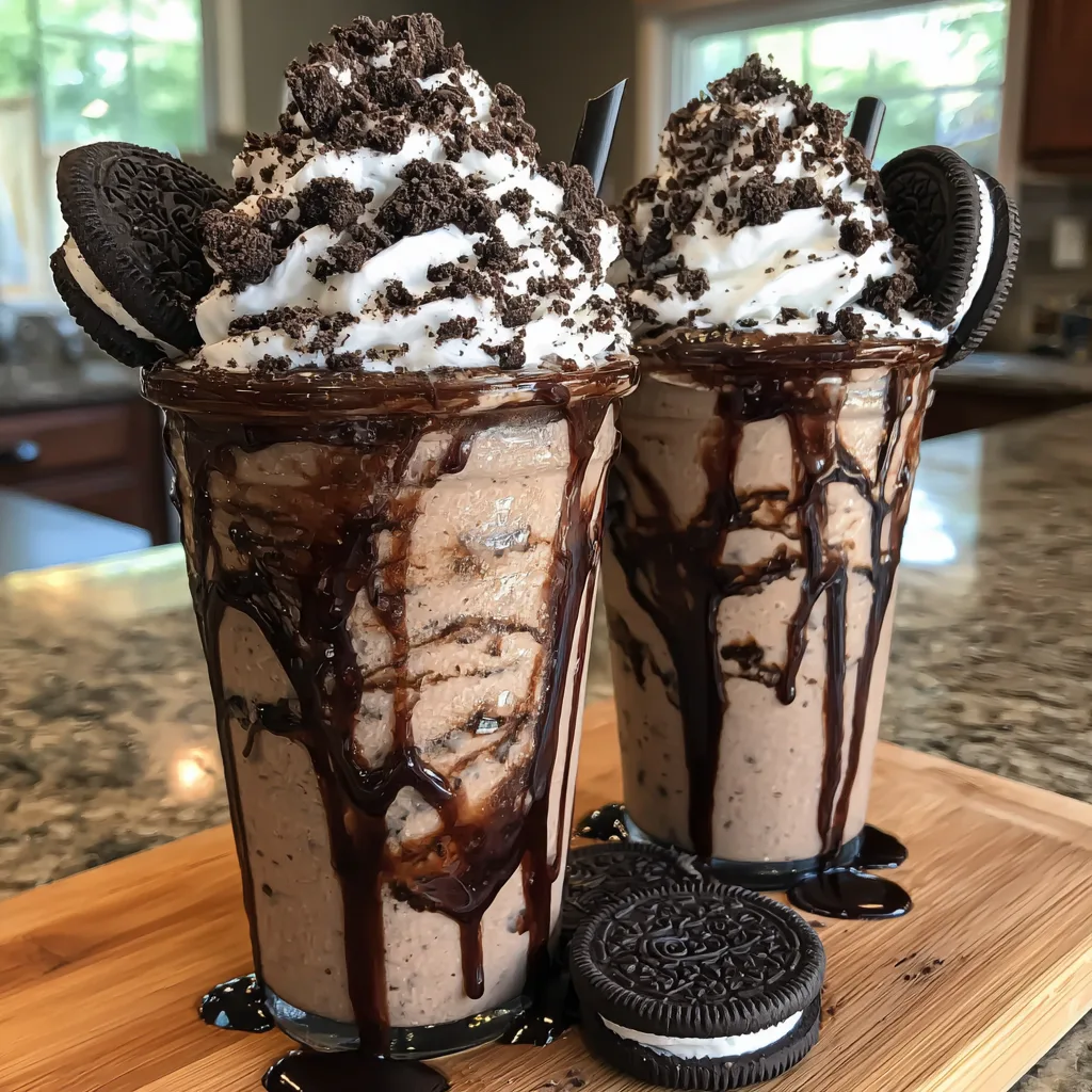- Garnish and Serve: Top each glass with a very generous swirl of whipped cream. Take the extra Oreo cookies and either crumble them over the whipped cream or gently press a whole cookie into the side of the creamy peak. For an extra touch of decadence, drizzle a little more chocolate syrup over the top. Serve immediately with a wide straw and enjoy the icy bliss!