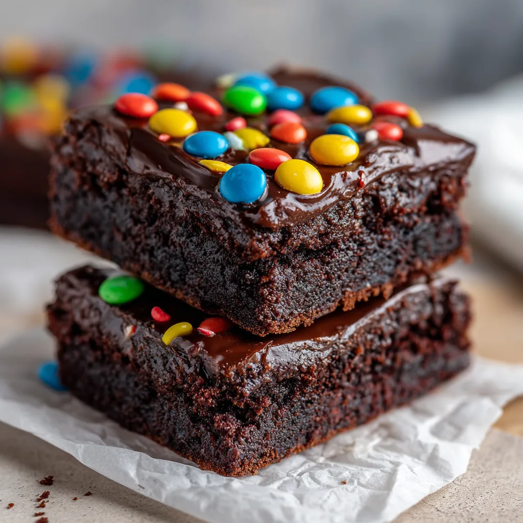 The beauty of this recipe lies in its texture. We aren’t going for a light, airy, cake-like brownie here. Oh no. We are aiming for maximum density—a rich, chewy, chocolatey brick of joy that practically melts in your mouth. Covered in a silky, two-ingredient chocolate ganache and showered in colorful candy-coated chips, these brownies are visually stunning and guaranteed to be an absolute hit with kids and adults alike.
