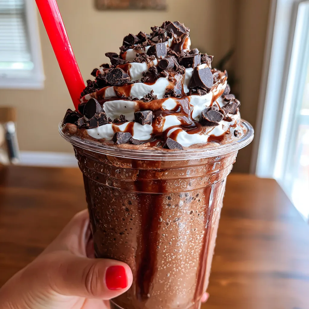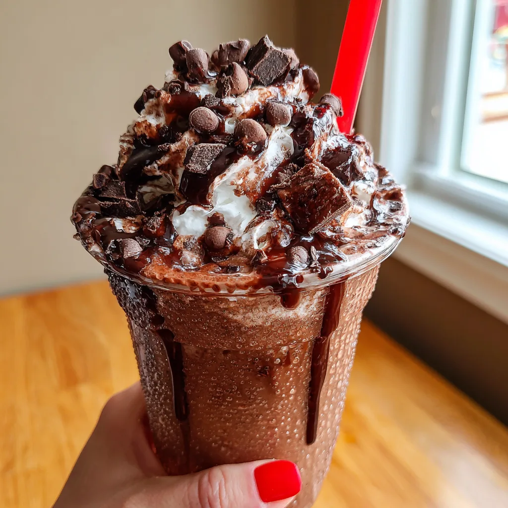 Pour immediately into a tall glass. For the full experience shown in the photo, top with chocolate whipped cream and a sprinkle of chocolate chips. Stick in a straw and enjoy immediately while it is ice-cold.