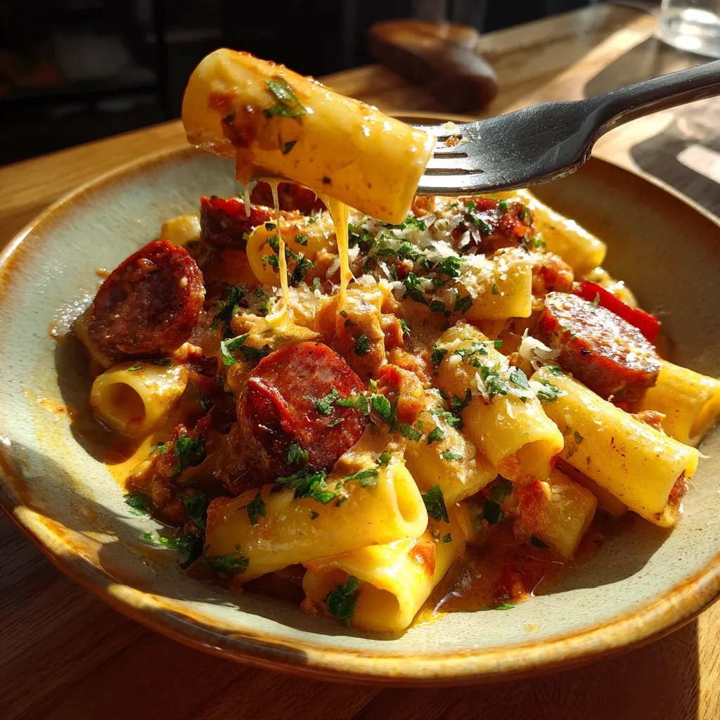 - Texture Heaven: We use rigatoni for this recipe because the wide tubes capture chunks of sausage and pools of creamy sauce, ensuring every bite is juicy and flavorful.