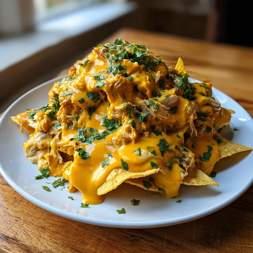 8. Plate and Garnish: Arrange a massive mound of thick-cut tortilla chips on a large serving platter or individual plates. Using a ladle or large spoon, generously scoop the hot, creamy chicken mixture over the chips, ensuring it pools into the crevices.