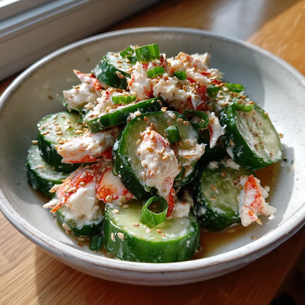 This salad is a masterclass in texture. You have the cool, crisp snap of fresh cucumbers, the tender, slightly sweet shred of crab meat, and the rich, velvety coating of a savory mayonnaise-based dressing. Topped with the nutty crunch of toasted sesame seeds and the bite of fresh scallions, it hits every single flavor note you could want in a light meal or appetizer.