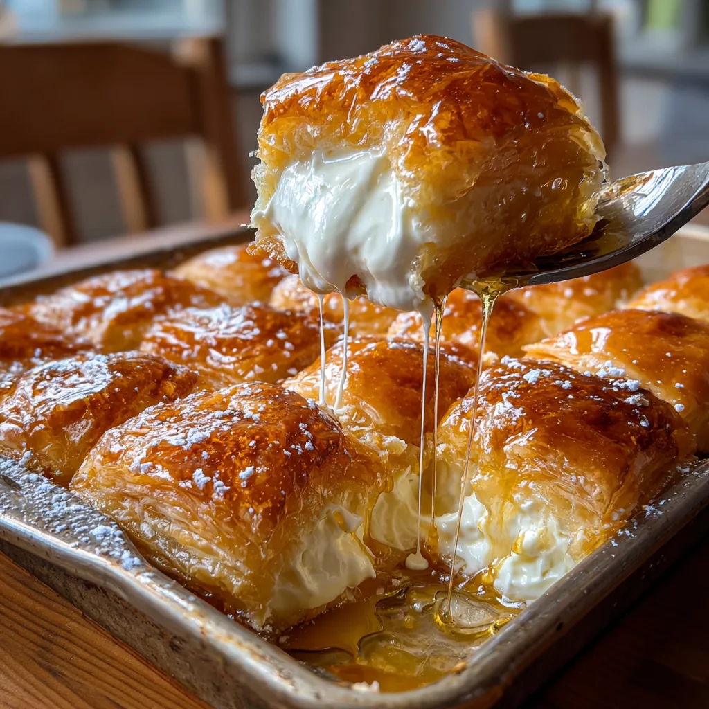 Imagine pulling a tray out of the oven, the pastry puffed to golden heights, glistening with a honey-butter glaze. But the real secret lies inside. Unlike dry pastries that rely solely on the dough for flavor, these squares are packed generously with a diplomat-style cream—a cloud-like hybrid of custard and whipped cream that is neither too heavy nor too sweet. It is the kind of dessert that makes your guests stop mid-sentence, fork hovering, as they take that first bite of crunchy shell and luscious interior.