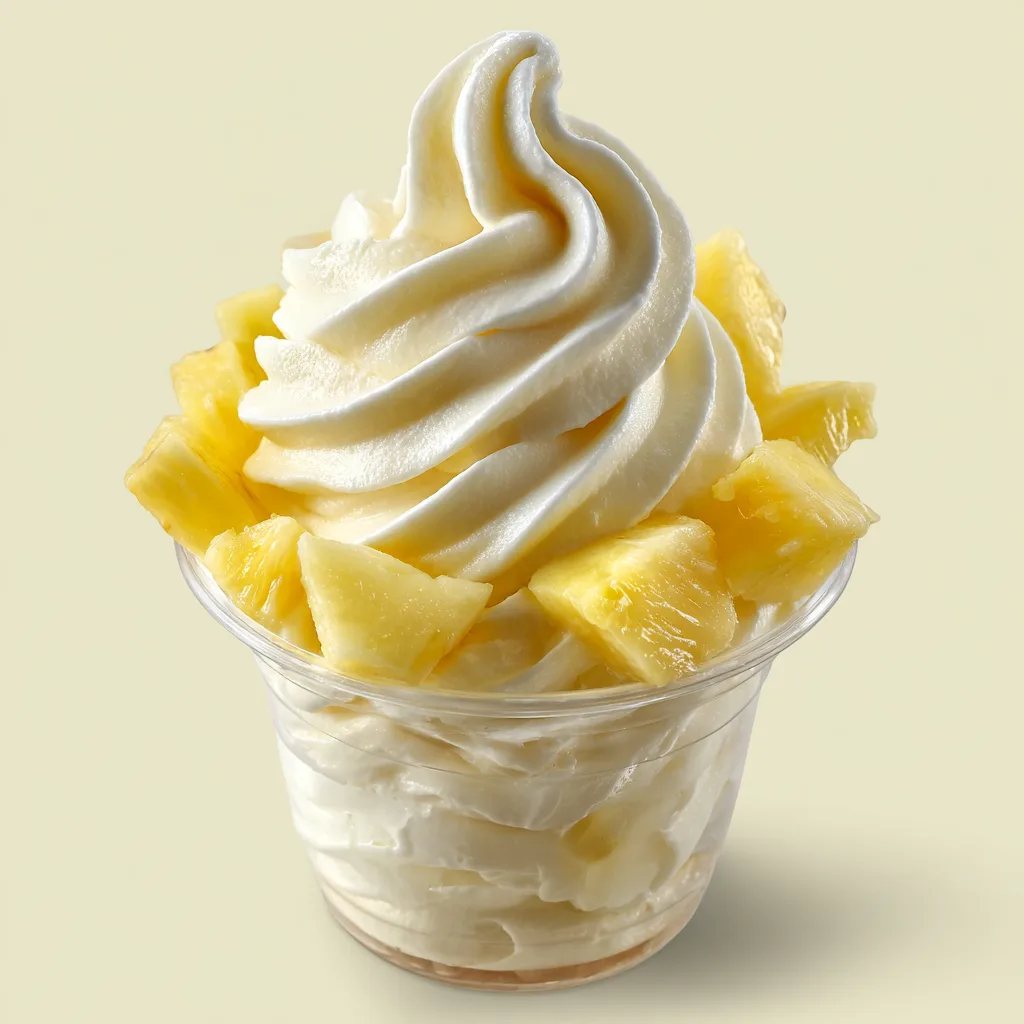 5. Swirl and Serve: Pipe the pineapple whip into clear plastic cups or bowls, swirling upwards to create a tall peak. Garnish with a fresh wedge of pineapple. Serve immediately with a spoon and enjoy the magic!