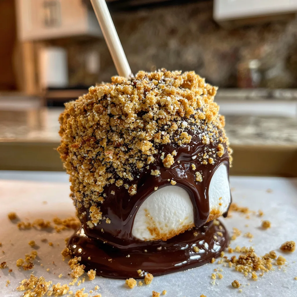 The Chocolate Coating: The chocolate acts as both the primary flavor contrast to the sweet marshmallow and the “glue” that holds the graham cracker crumbs in place. While you can melt standard chocolate chips, they can sometimes be a bit thick for dipping. For the smoothest, glossiest coat, we recommend using high-quality chocolate melting wafers (like Ghirardelli) or adding a tiny teaspoon of coconut oil to your chocolate chips to thin them out and give them a beautiful shine.