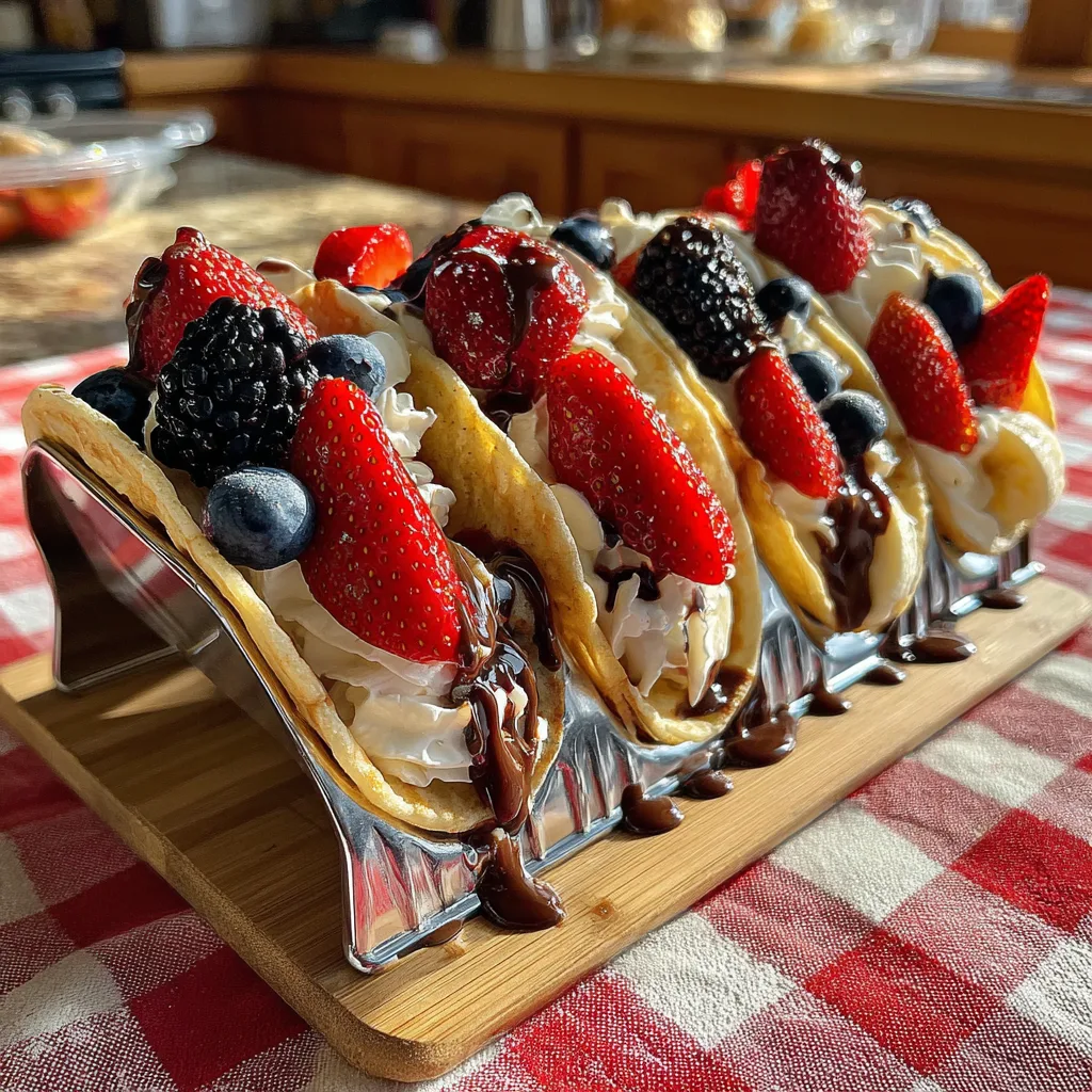 Whether you are hosting a festive brunch with friends, trying to get picky kids excited about breakfast, or simply treating yourself to a decadent Sunday morning spread, these sweet tacos check every single box. The beauty of this recipe lies not just in its taste, but in its visual appeal. Vibrant red strawberries, deep blue blueberries, and dark blackberries nestled into a bed of cloud-like whipped cream, all hugged by a golden-brown pancake and generously drizzled with chocolate and peanut butter—it is a feast for the eyes before you even take your first bite.