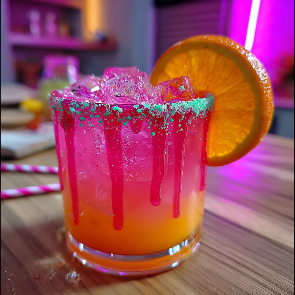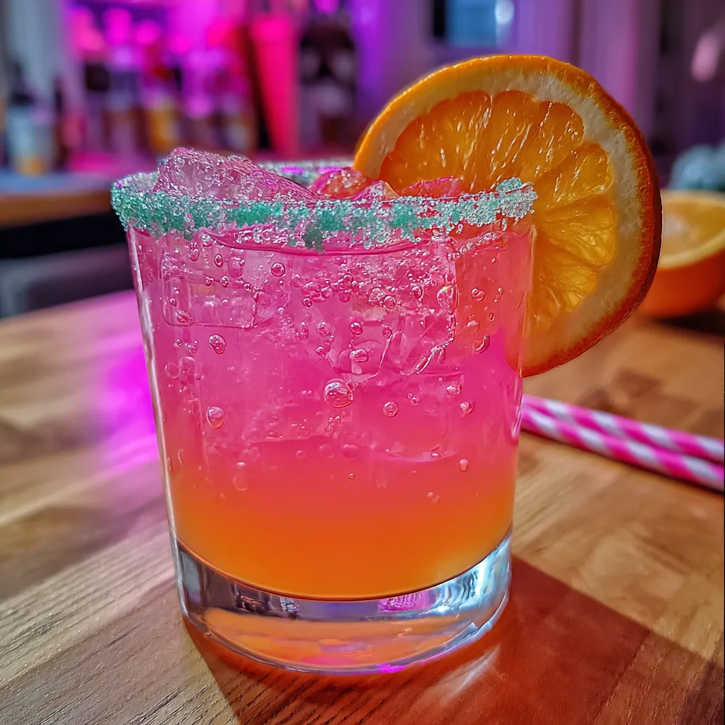 A touch of pineapple juice adds depth and a distinctly island-inspired aroma, while a small dash of grenadine syrup sinking to the bottom creates both the signature gradient look and a rich, sweet finish as you sip. The colorful sugar rim isn’t just for decoration; it provides a delightful crunch and a burst of sweetness that perfectly contrasts the tangy liquid beneath it.
