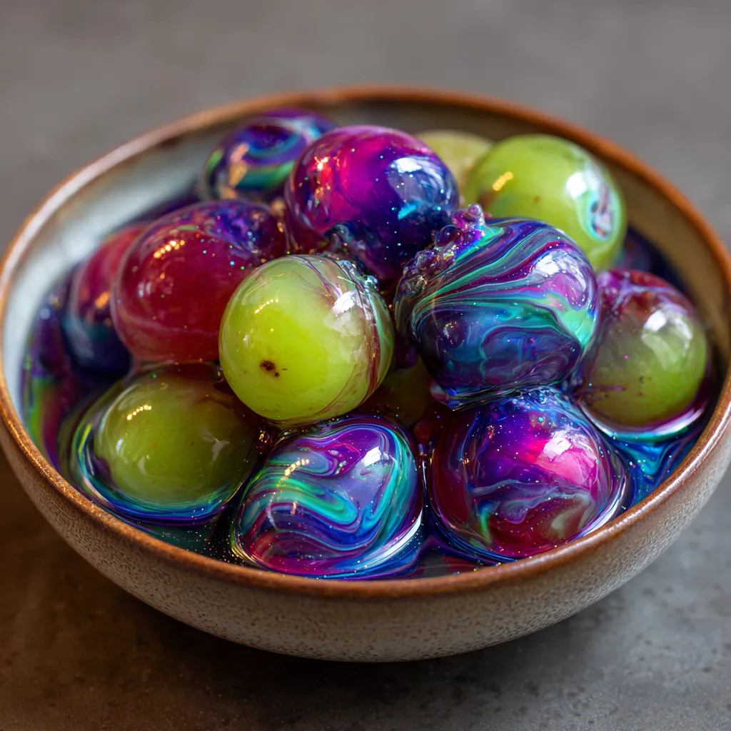 - Set and Serve: The candy should set within minutes on the cold grapes. The result will be a beautifully swirled, rock-hard shell. Serve immediately, as they are best consumed within a few hours for that ultimate fresh-fruit experience. Garnish with a little edible glitter for extra cosmic sparkle.