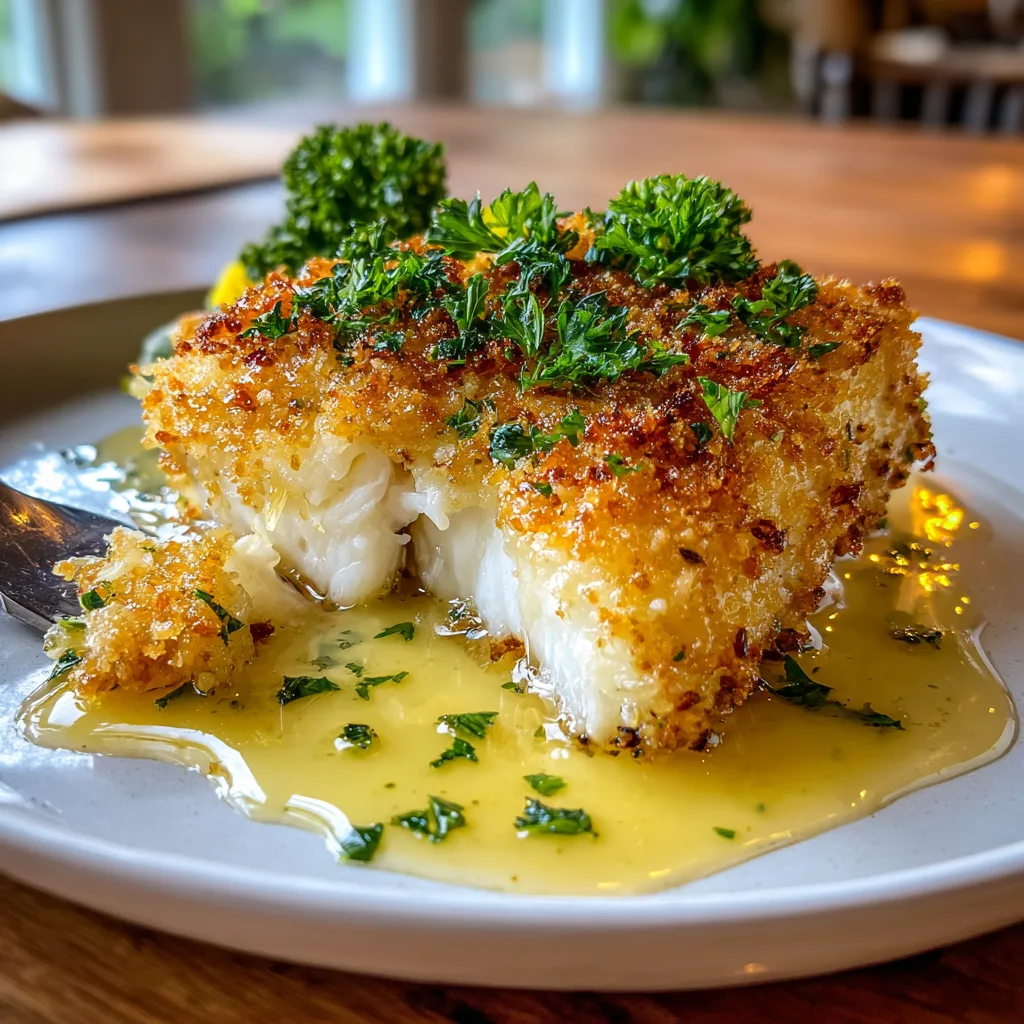 Imagine a thick, juicy fillet of fresh halibut, known for its mild flavor and firm texture, topped with a golden, crunchy armor of panko breadcrumbs, salty parmesan cheese, and aromatic garlic. As it bakes, the fats from the cheese and butter melt down into the fish, keeping it incredibly moist while the top crisps up to perfection. It is a textural masterpiece that requires minimal effort but delivers maximum impact.