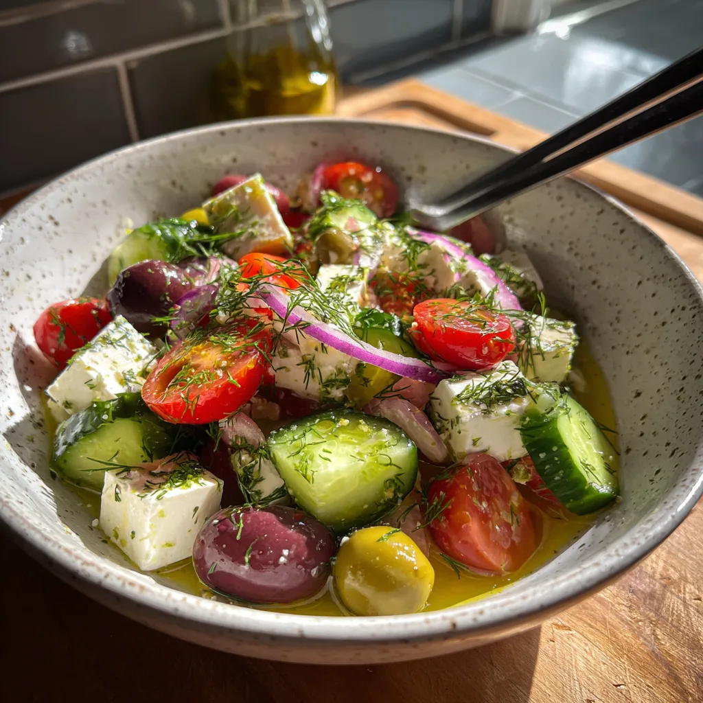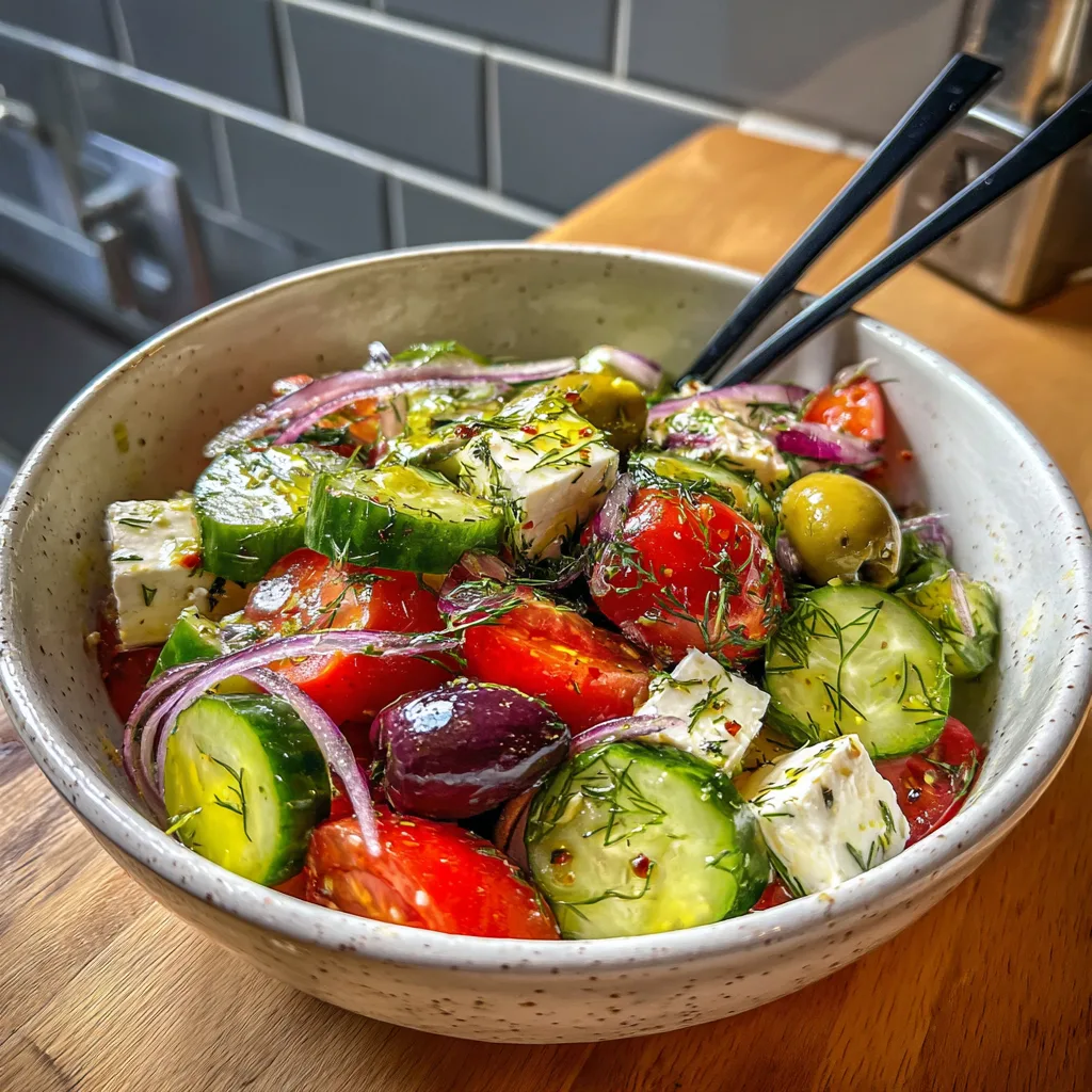 Furthermore, the use of Persian cucumbers is non-negotiable for the perfect texture. These thin-skinned, seedless (or nearly seedless) cucumbers are crunchier and less watery than standard slicing cucumbers. This ensures that your salad remains crisp and doesn’t turn into a soup at the bottom of the bowl. Combined with the aromatic punch of fresh dill, parsley, and “lots of oregano,” every bite is a fresh explosion of garden flavors.