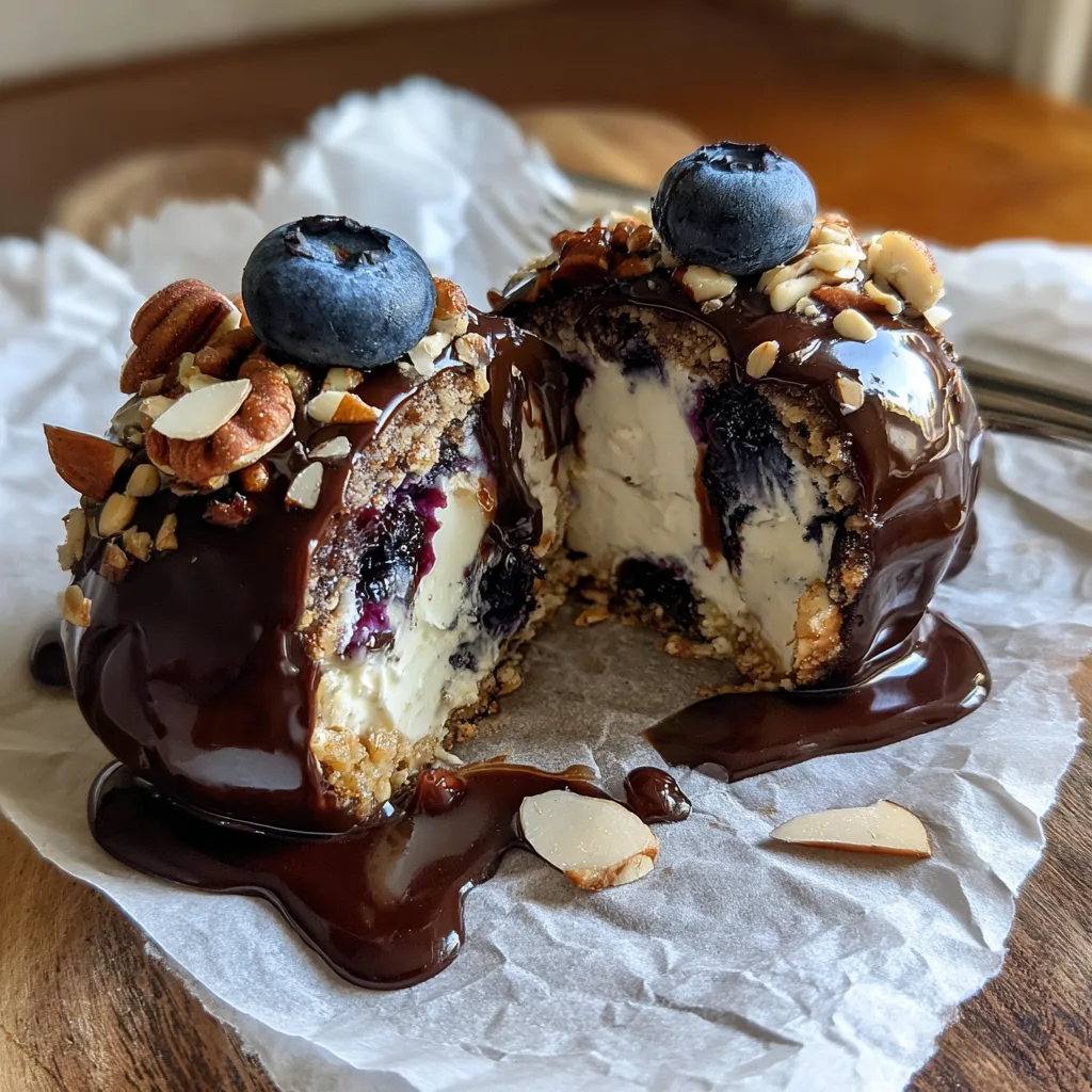 Swap the blueberries for diced fresh strawberries. Instead of a dark chocolate shell, use high-quality melted white chocolate mixed with a little coconut oil. For the base, replace the crushed nuts with crushed graham crackers or golden Oreos.