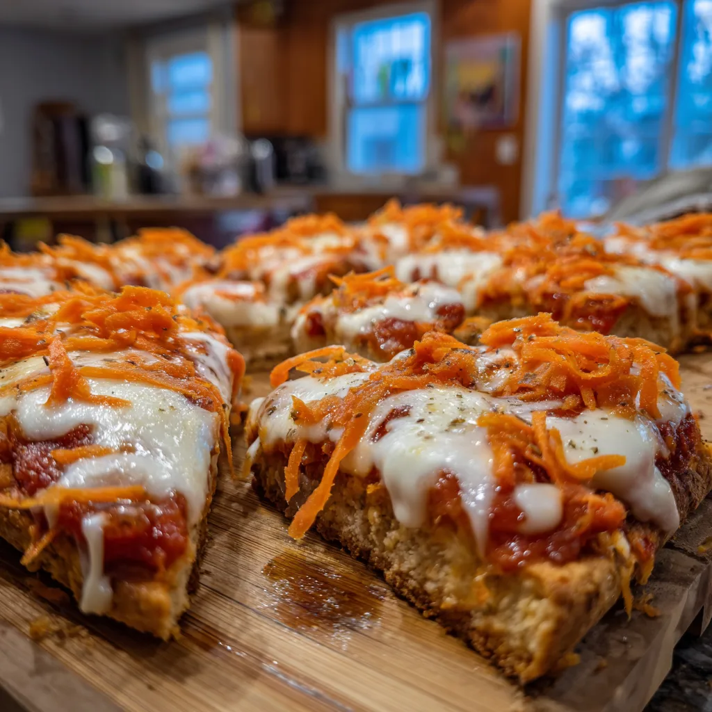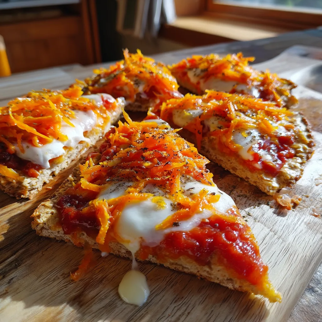 - Add Sauce and Toppings: Remove the crust from the oven. Spread the tomato puree or pumpkin puree evenly over the crust, leaving a small border for the “crust” handle. Sprinkle the shredded carrots generously over the sauce, followed by the mozzarella cheese.
