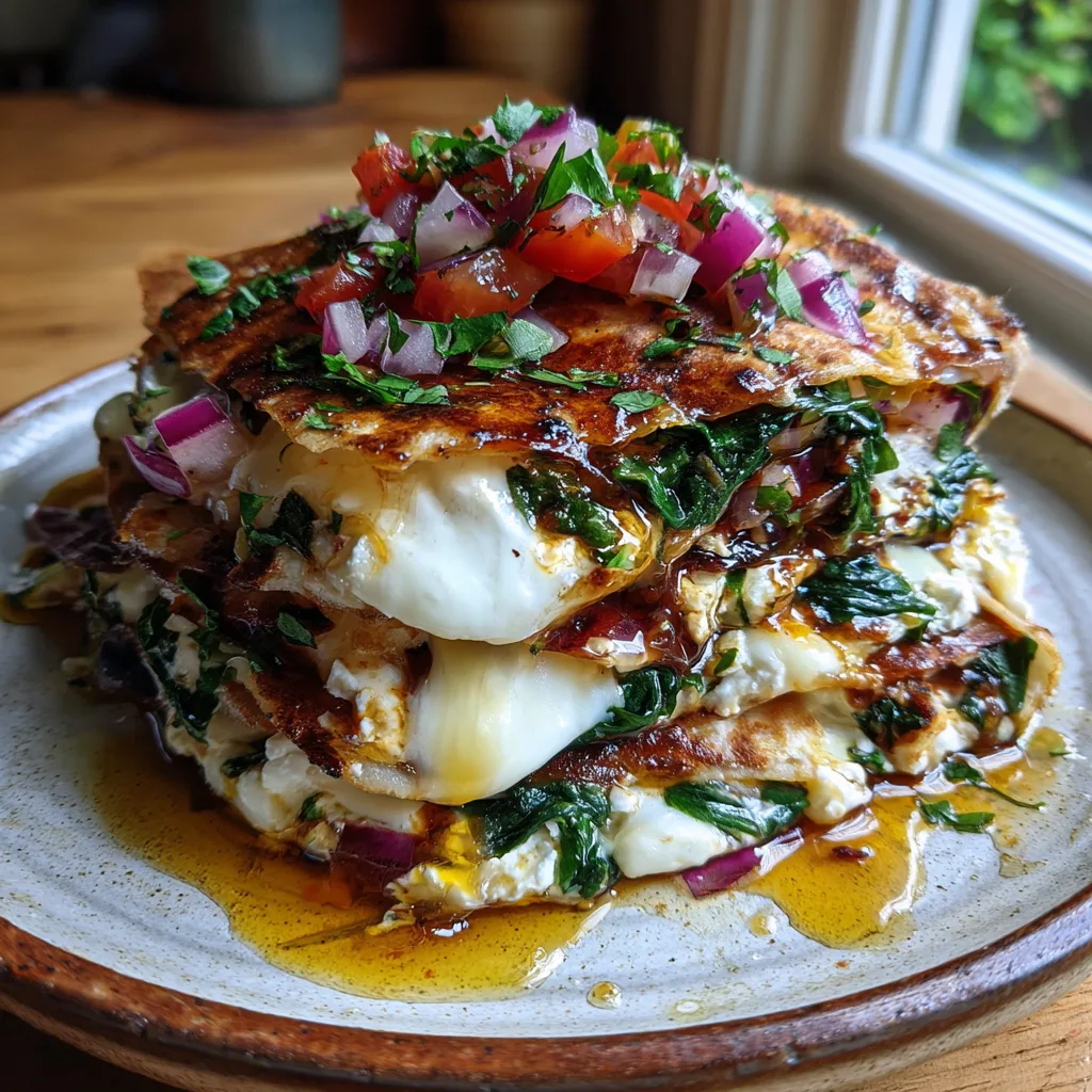 Crispy Mediterranean Quesadillas with Spinach, Feta, & Mozzarella