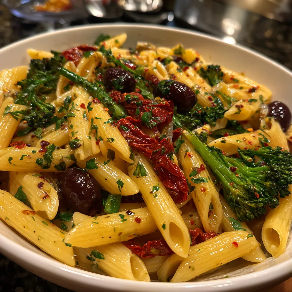 When the evening rush hits and you need a dinner that is both incredibly fast and undeniably spectacular, this Vibrant Mediterranean Pasta is your ultimate solution. Bursting with the sun-drenched flavors of the Mediterranean coast, this dish transforms simple pantry staples into a restaurant-quality meal in under 20 minutes. Imagine perfectly al dente penne pasta, slick with a rich garlic and olive oil sauce, tossed with sweet and chewy sun-dried tomatoes, briny Kalamata olives, tender crisp broccolini, and finished with generous crumbles of salty feta cheese. It is a symphony of bold flavors and satisfying textures that happens to be entirely vegetarian and packed with nutritious ingredients.