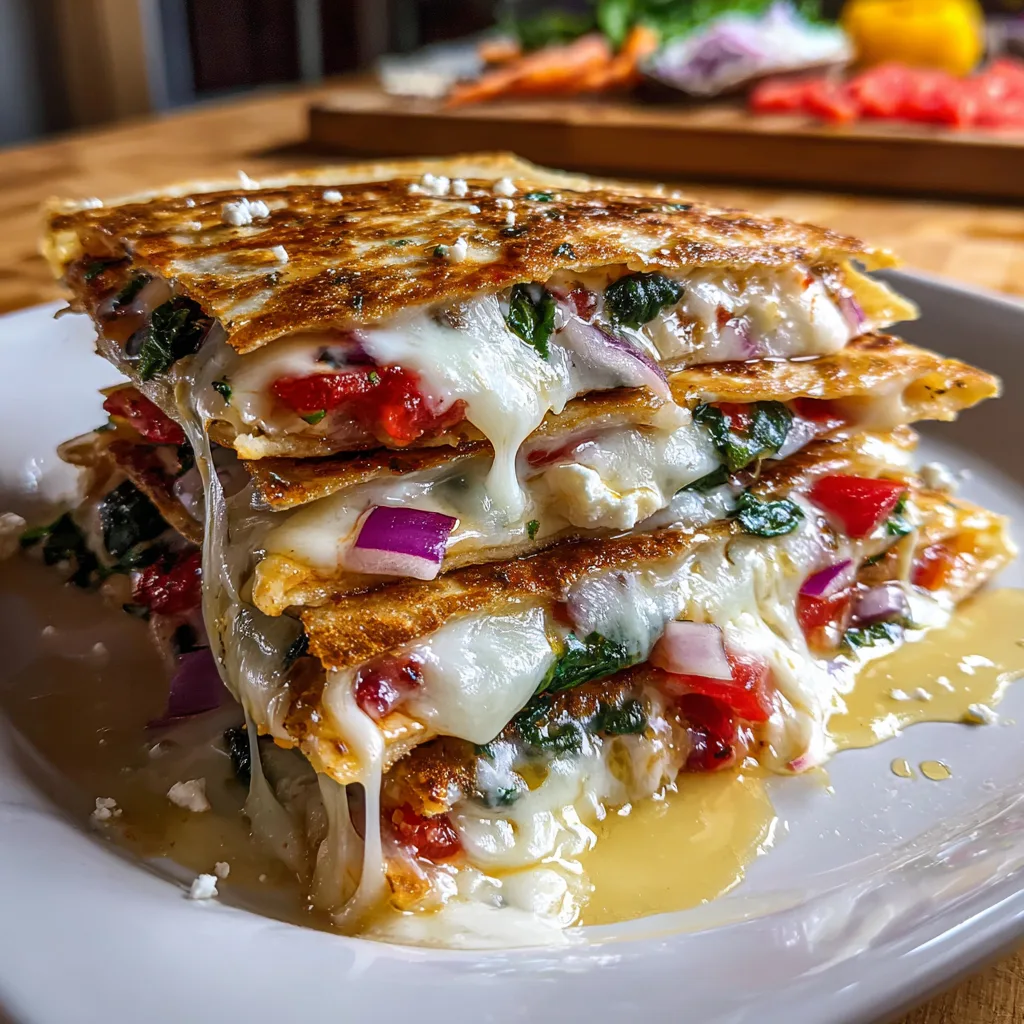 Red Onion: Red onions offer a sharp, slightly spicy crunch that contrasts beautifully with the soft cheeses and vegetables. When warmed slightly in the quesadilla, their harshness mellows out into a pleasant, savory sweetness.