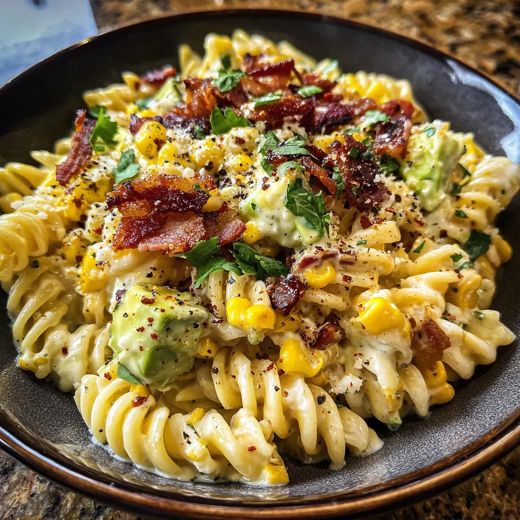 This dish is a brilliant, mouth-watering fusion of two beloved classics: the comforting, carb-heavy satisfaction of a traditional pasta salad, and the smoky, tangy, spicy, and creamy elements of authentic Mexican Street Corn, known as Elote. Every bite delivers the satisfying chew of spiral pasta, the sweet burst of corn kernels, the rich creaminess of fresh avocado, the salty crunch of bacon, and the sharp bite of cotija cheese, all tied together in a luxurious chili-lime dressing. It is unapologetically bold, wildly addictive, and virtually guaranteed to be the first bowl scraped clean at your next gathering.