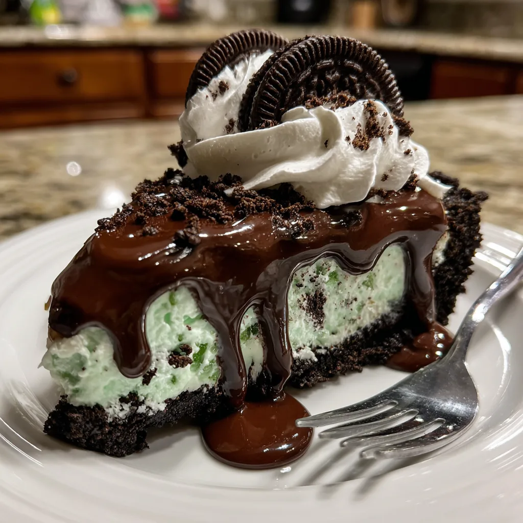 - Textural Perfection: You get the crunchy, crumbly texture of the cookie crust, the light-as-air, cloud-like fluffiness of the mint filling, the smooth silkiness of the chocolate ganache, and the slight bite of the cookie chunks hidden inside the pie.