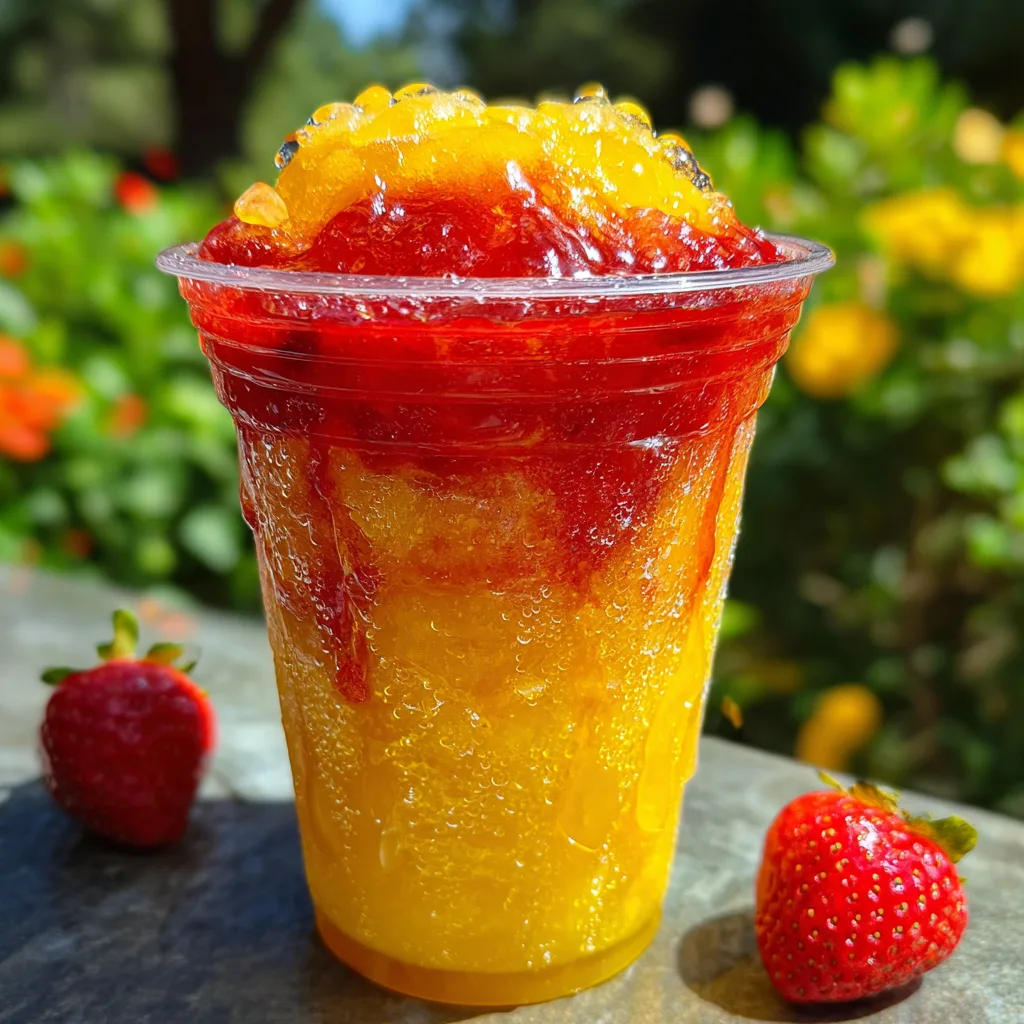 2. The Spoon Method: The easiest way to assemble is to take a tall, clear glass and use a long spoon. Add a dollop of the yellow pineapple slush to the bottom of the glass. Then, add a dollop of the red strawberry slush right on top of it. Continue alternating scoops—yellow, red, yellow, red—until the glass is full. Use a straw or a butter knife to gently drag through the layers once or twice to create a marbled swirl effect.