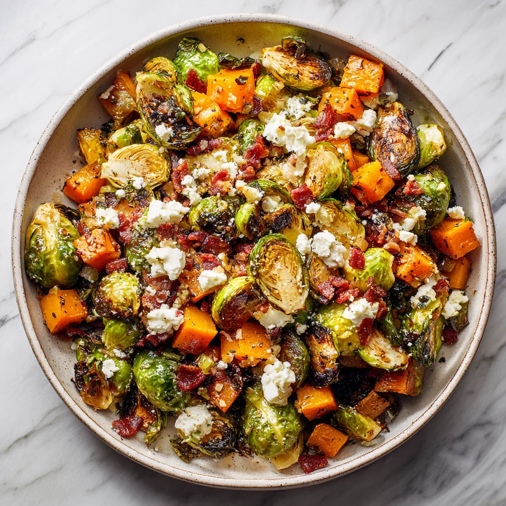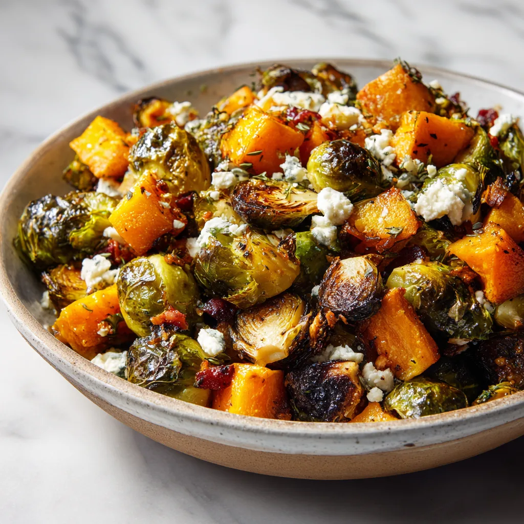The Ultimate Roasted Brussels Sprouts and Butternut Squash with Bacon and Feta