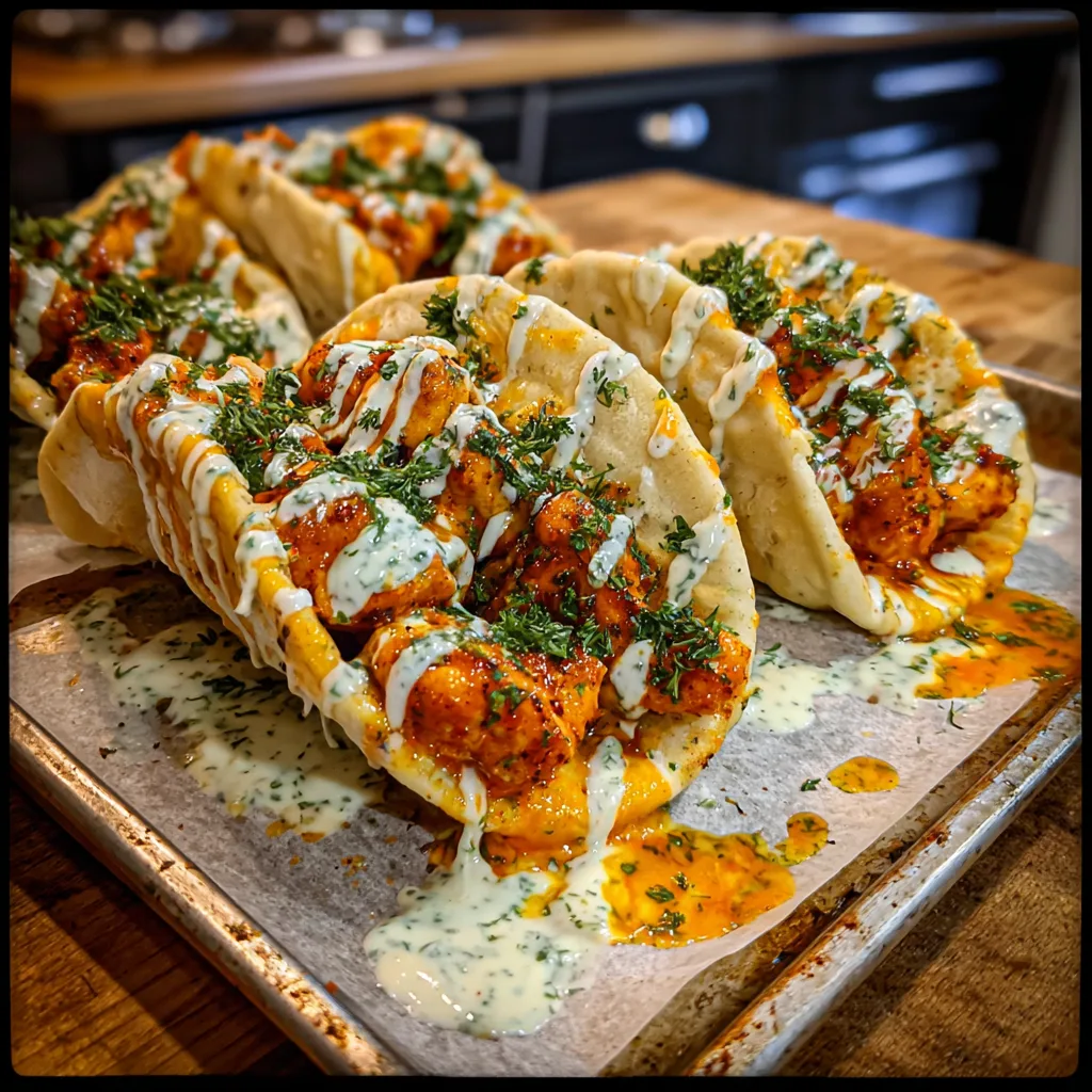 7. Assemble the Pitas: Take a warm pita, fold it slightly, and generously fill it with the hot, glossy chicken chunks. Drizzle heavily with the creamy herby ranch dressing. Garnish with an extra sprinkle of fresh chopped herbs.