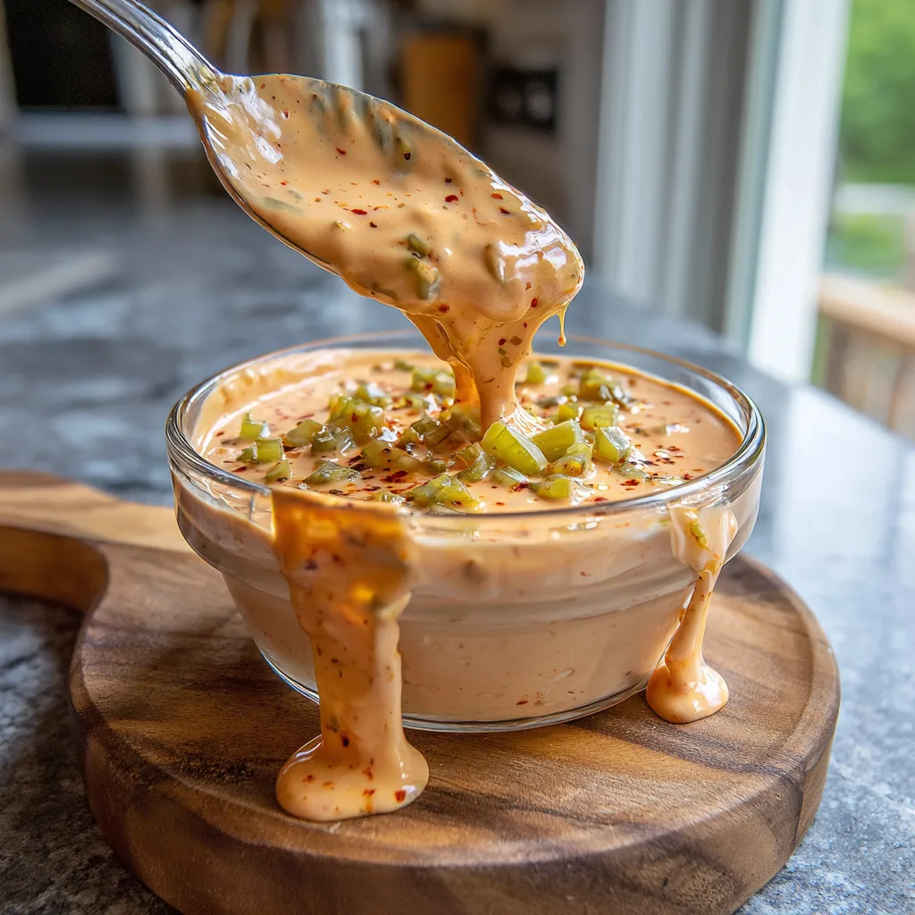 Salad Dressing Alternative: If you thin the sauce out with a little extra pickle juice or a splash of water, it makes a fantastic, zesty dressing for a wedge salad or a chopped cheeseburger salad.
