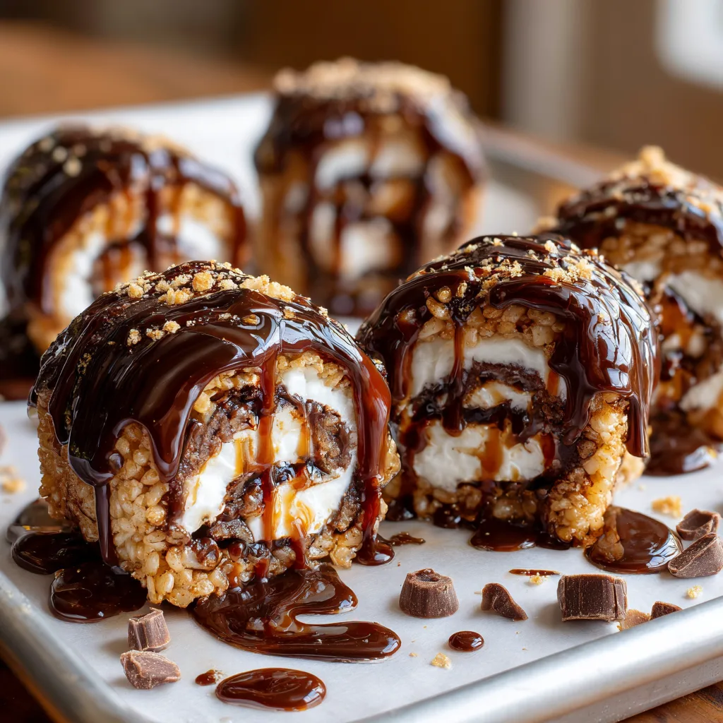 Peanut Butter Lover’s Roll: Swap out half of the marshmallow fluff for creamy peanut butter. You can also mix Reese’s Pieces into the cereal mixture or use a peanut butter drizzle on top instead of chocolate. This gives the treat a classic chocolate-peanut butter profile that is always a hit.
