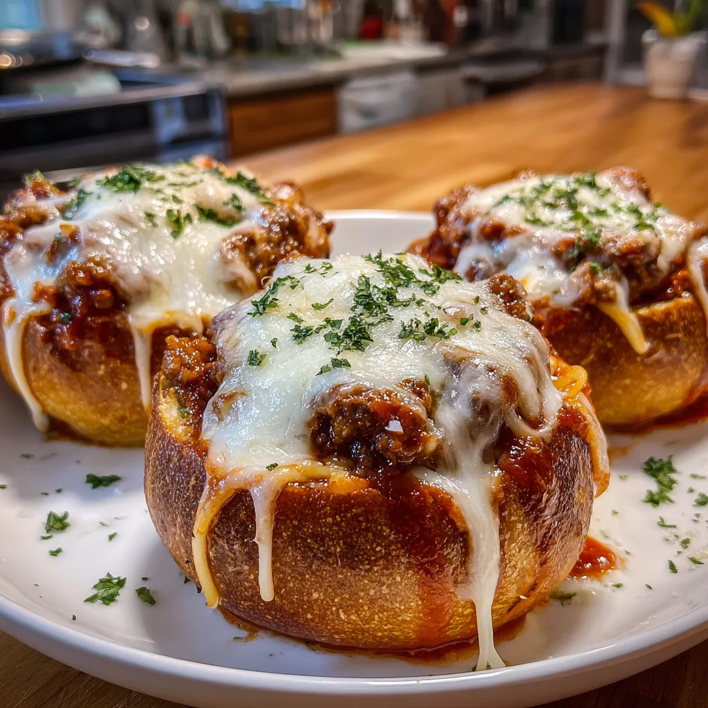 When the weather turns chilly or you simply find yourself craving the ultimate indulgence, there is nothing quite like the marriage of warm, crusty bread and rich, savory pasta. Welcome to the world of Garlic Bread Spaghetti Bowls. This is not just a meal; it is an experience. Imagine taking a rustic, golden-brown loaf of bread, hollowing out the center, brushing it generously with rich garlic butter, and baking it until it becomes a crispy, flavorful vessel. Then, imagine filling that warm bread bowl to the absolute brim with perfectly al dente spaghetti, thoroughly coated in a robust, slow-simmered meat sauce. Finally, the crowning glory: a mountain of mozzarella and parmesan cheese, melted to gooey perfection and sprinkled with fresh parsley. It is a visual and culinary delight that brings the best of an Italian-American dinner table into one cohesive, mouth-watering dish.