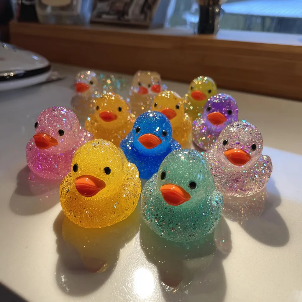 - The Bedazzled Finish: Once the ducks are completely hard, pop them out of the molds. To create the sparkly, rhinestone effect, lightly brush the ducks with a tiny amount of water or edible glue using a fine brush, then immediately roll or dip them generously in the coarse sanding sugar and edible glitter. Let them dry completely.