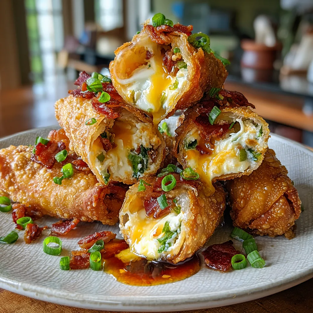 Crispy egg rolls filled with a creamy, spicy mixture of jalapeños, cream cheese, cheddar, and bacon. The perfect appetizer for parties and game days.