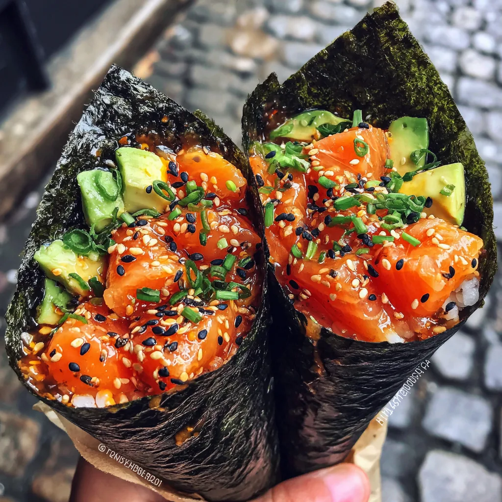 If you have ever been intimidated by the precise rolling mats and technique required for traditional maki rolls, allow me to introduce you to your new best friend: the Spicy Salmon Hand Roll, or Temaki. This is sushi let loose. It is fun, it is casual, and frankly, it is often more delicious because you get a higher ratio of decadent filling to rice. Based on the vibrant image of these overflowing cones, we are diving into a recipe that brings the excitement of a Japanese street food stall right into your kitchen.