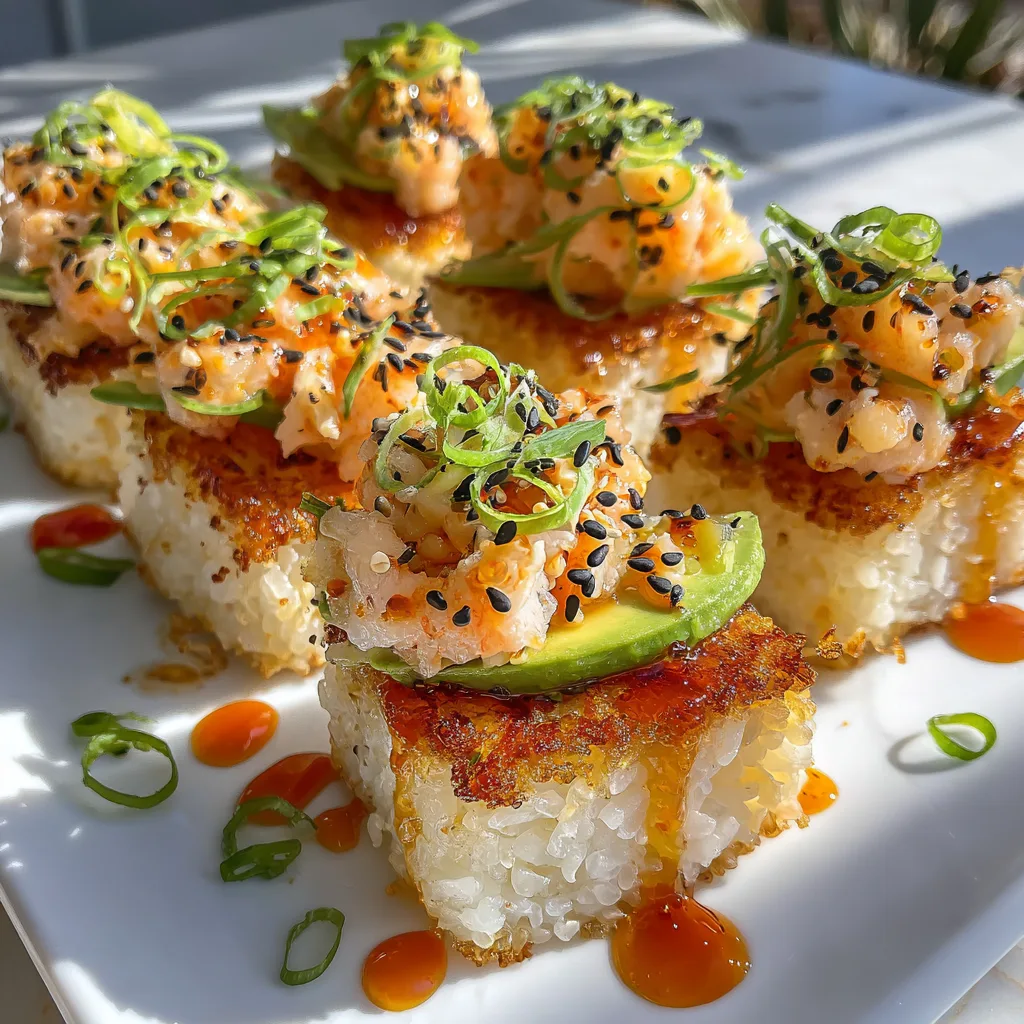 Truffle Avocado Rice: Skip the fish entirely. Top the crispy rice with smashed avocado, a drizzle of truffle oil, and flaky sea salt for a luxurious vegetarian option.