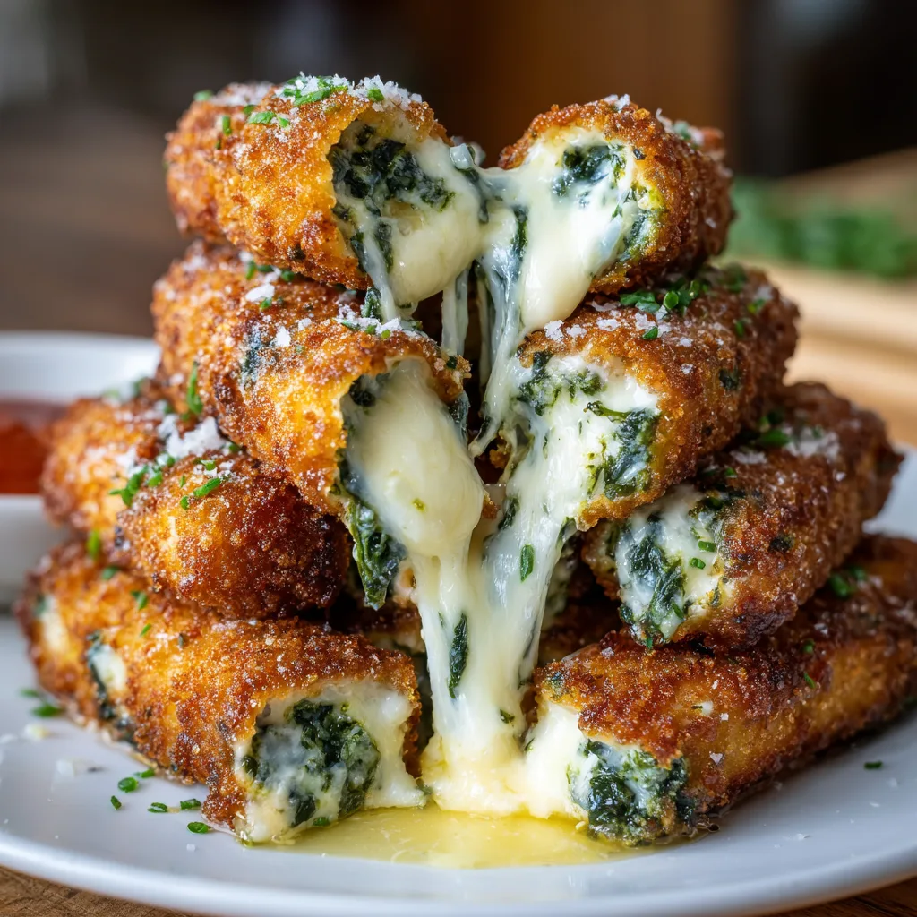 Spinach dip, on the other hand, had its own parallel rise to fame. Popularized in the mid-20th century, often utilizing soup mixes and frozen spinach (a marvel of modern convenience at the time), it became the quintessential party dip. By combining the handheld convenience of the mozzarella stick with the complex, savory depth of spinach dip, this recipe represents the natural evolution of comfort food: taking two familiar favorites and engineering them into an entirely new, elevated experience.