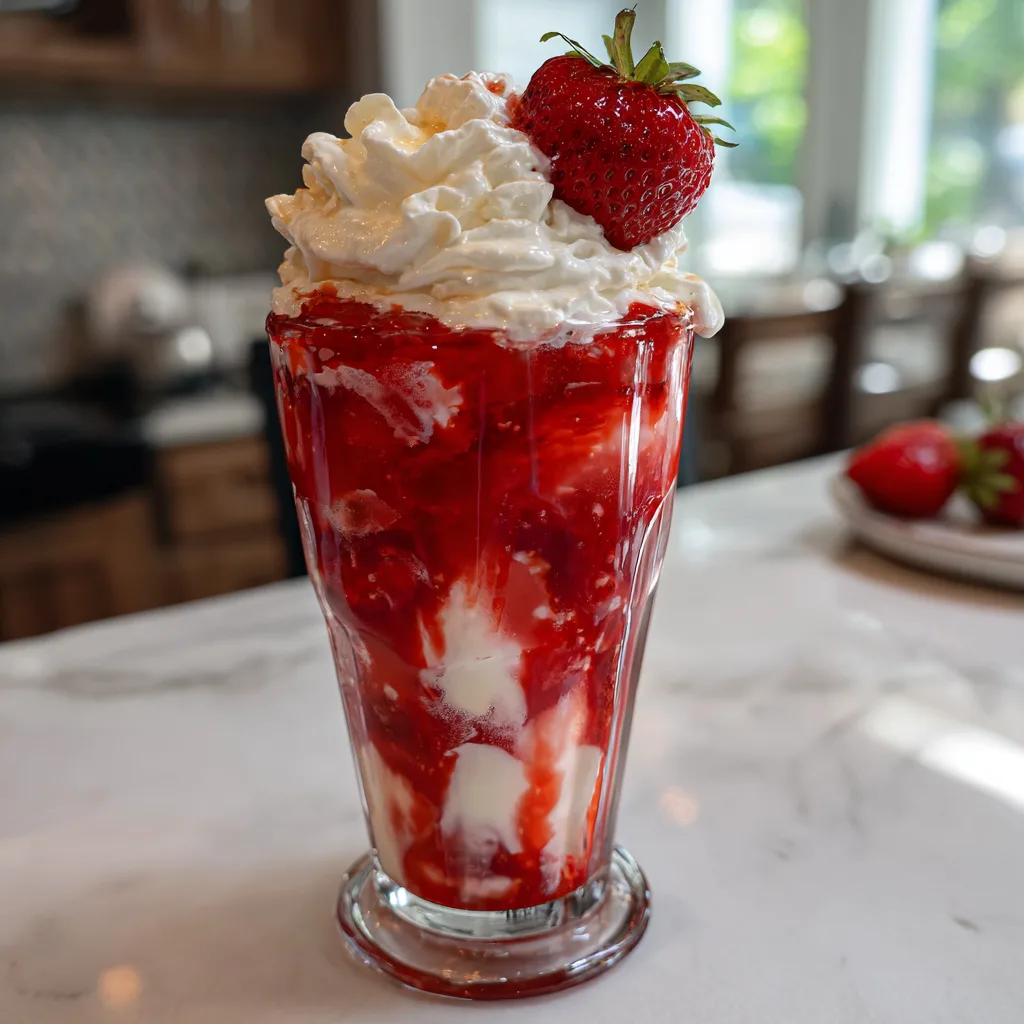 - The Garnish: Do not skip the garnish! A massive swirl of whipped cream (homemade or from a can) and a fresh, whole strawberry perched on the rim of the glass are essential for the visual appeal and the final dessert-like touch.
