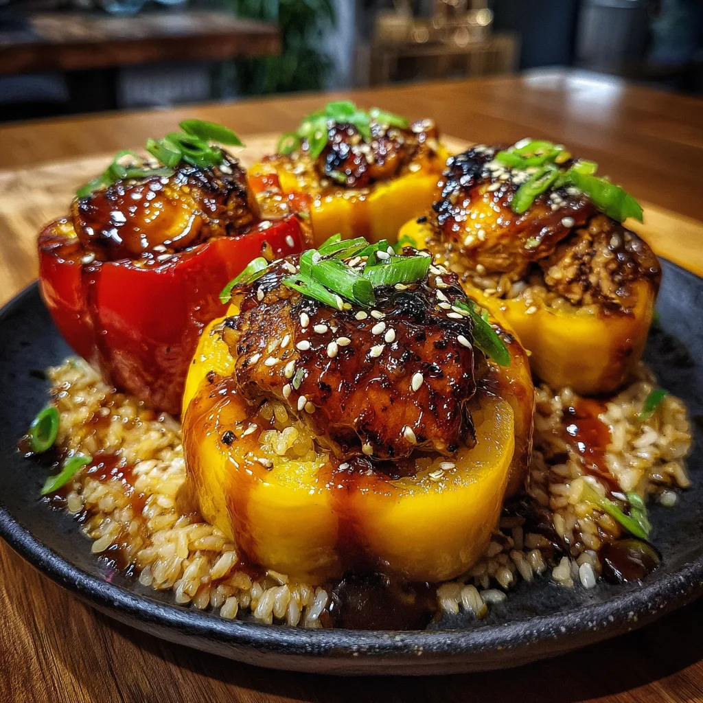 Sweet & Savory Teriyaki Pineapple Chicken & Rice Stuffed Peppers