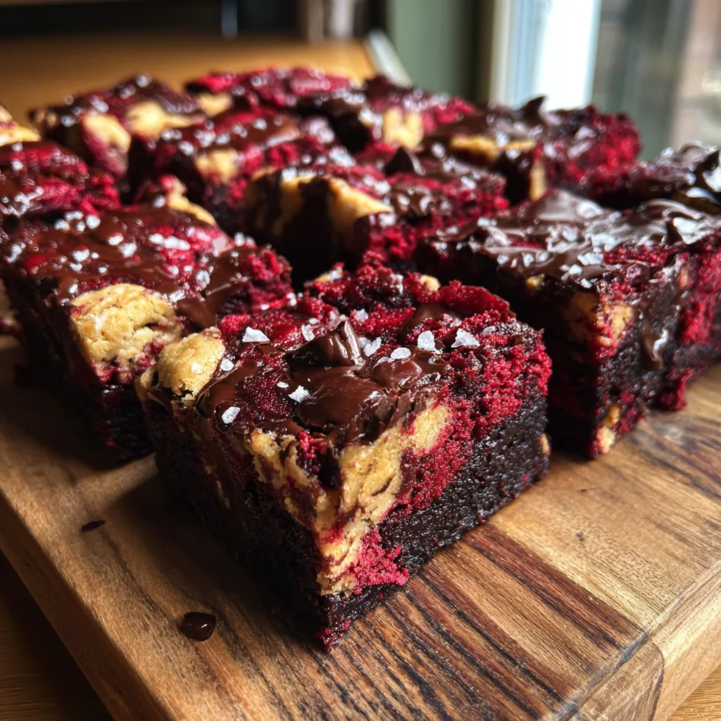 Deciding between a chewy chocolate chip cookie and a fudgy brownie is one of the hardest choices a dessert lover has to make. But what if you never had to choose again? Enter the Red Velvet Brookie. This stunning, vibrant, and utterly decadent dessert combines the rich, cocoa-infused tang of red velvet brownies with the buttery, golden nostalgia of a classic chocolate chip cookie. Swirled together in a mesmerizing patchwork of red and gold, topped with melting chocolate chips and a crunch of sea salt, these bars are the ultimate showstopper.