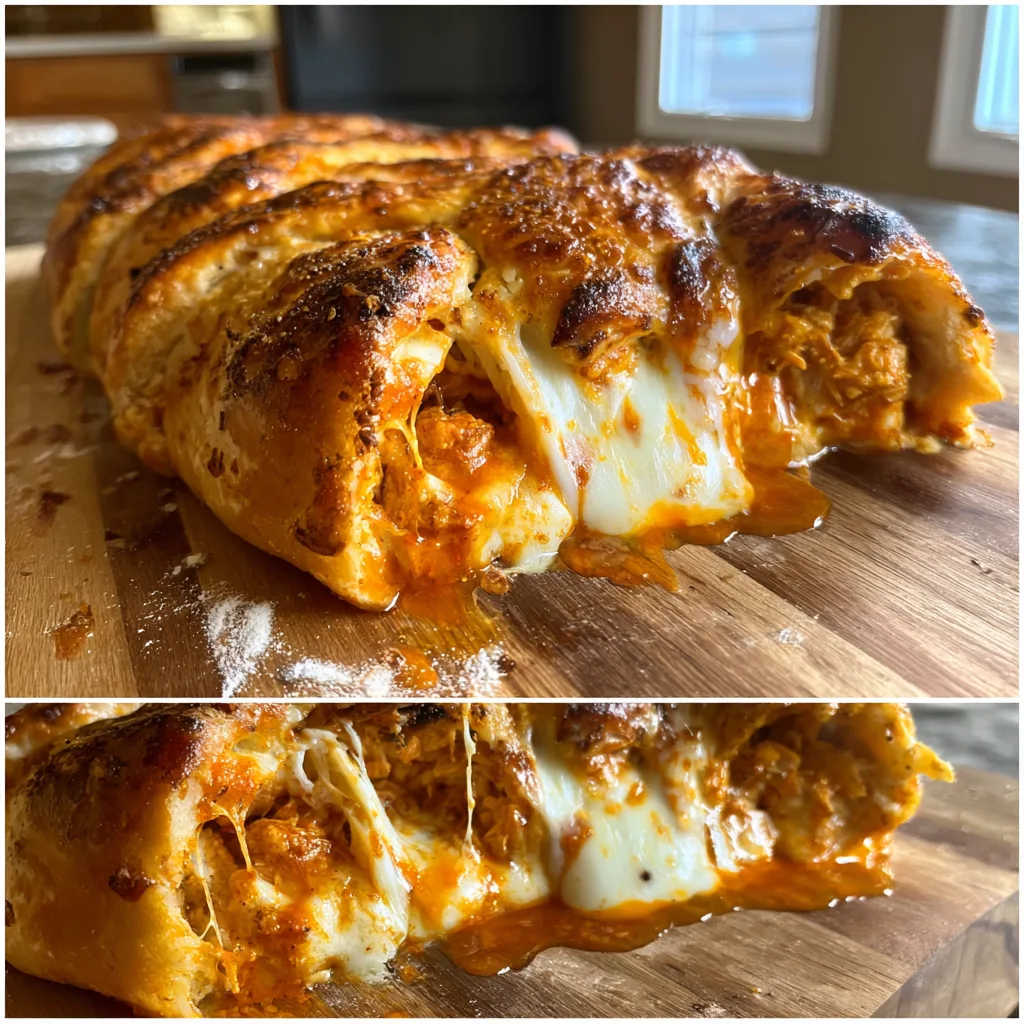 A savory, spicy, and cheesy chicken filling wrapped in golden braided dough. The perfect appetizer or dinner for buffalo sauce lovers.